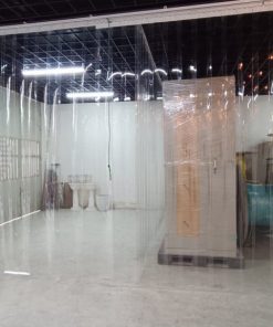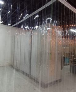 (Cấu tạo gồm những sợi nhựa bản 200mm xếp chồng 50mm. Được treo móc lên thanh treo cố định trên tường hoặc trần nhà )